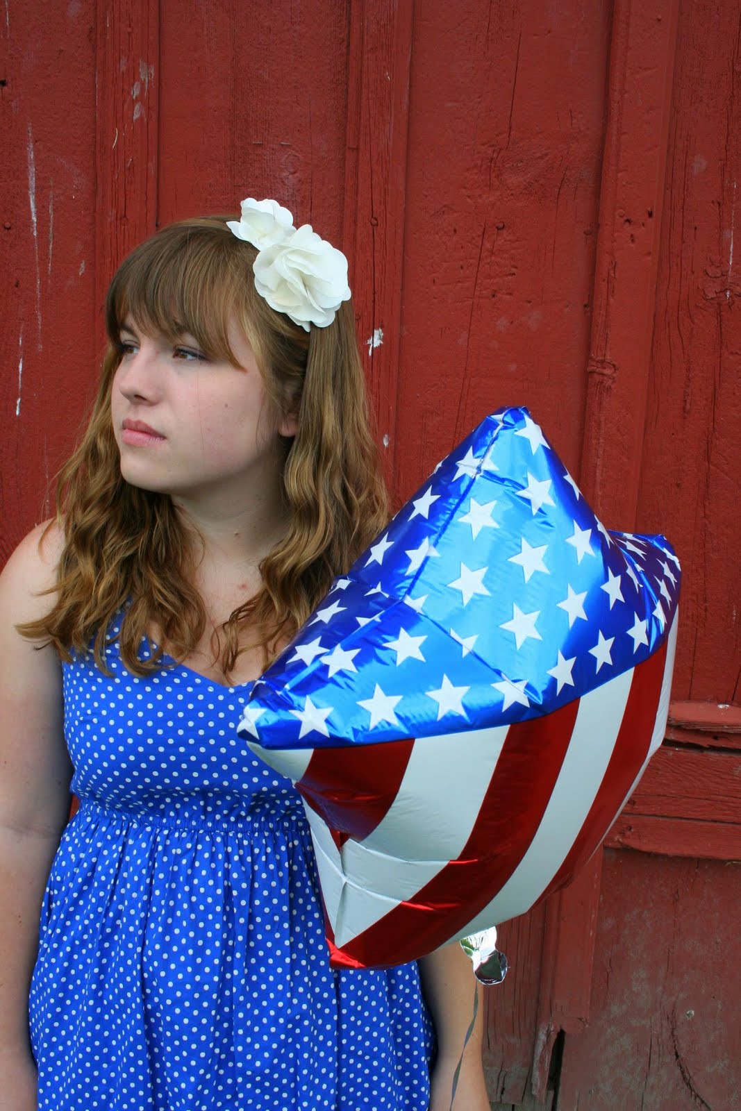My sister bought this dress for her graduation...but alas, she didn't like it. It still has the tags and everything (shhh!), so we plan on returning it. But not before I used it for a photoshoot. I saw it and fell in love. The polka dots are so sweet and it's soft to the touch. Upon first glance, I knew I'd be pairing it with something red. So when the time came for a photoshoot and had to decide on an outfit, I immediately grabbed the dress, threw it together with my red heels I never wear because they are unbearably painful, and added a touch of white with my headband. We grabbed some balloons and 10 minutes later, had ourselves the perfect 4th of July setup!
